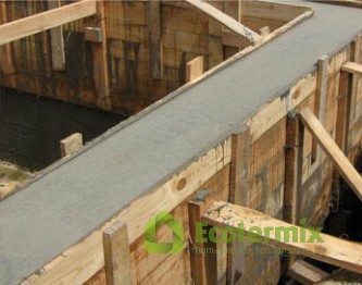 Готовим бетонную смесь и добавляем в нее Пенетрон Адмикс → монтируем опалубку и заливаем фундамент смесью → после демонтажа опалубки укладываем по периметру фундамента специальную влагоотталкивающую прокладку Пенебар → при формировании монолита стены добавляем в раствор Пенетрон Адмикс